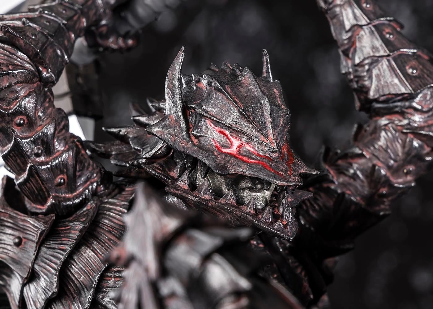 Chaque détail est pensé pour refléter l’intensité de la saga : de l’armure métallique étincelante à l’épée massive Dragonslayer, en passant par les traits du visage gravés par la douleur et la colère. L’effet Metallic Touch ajoute une profondeur saisissante à cette figurine, donnant vie à la force et à l’aura sombre de Guts.
