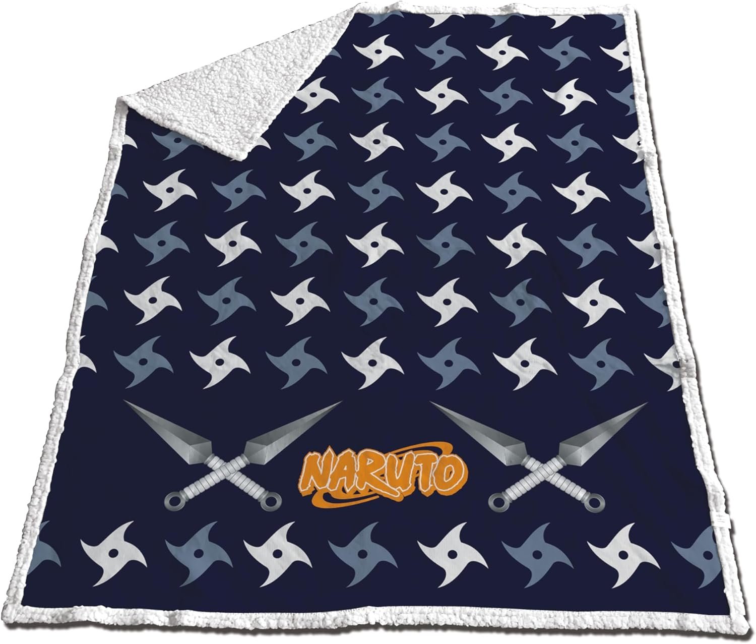 Grand Plaid Sherpa Deluxe Naruto : Shuriken & Kunai [100% Polyester, 130x170cm]