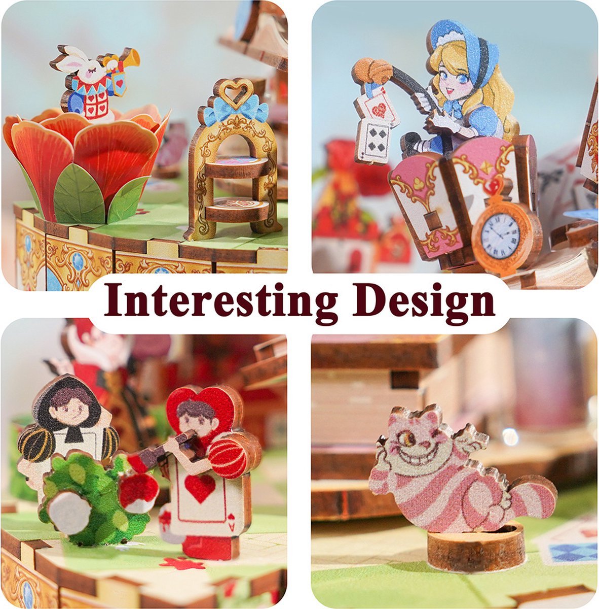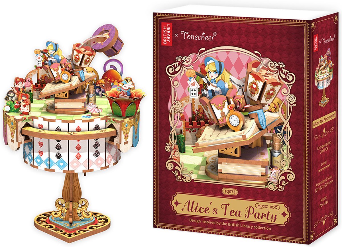 Entrez dans l’univers féerique de Lewis Carroll avec le Kit « Book Nook » Alice’s Tea Party. Ce kit à construire de 209 pièces vous plonge dans la célèbre scène du thé chez le Chapelier fou, recréée en version miniature avec une multitude de détails magiques. Fabriqué en contreplaqué de qualité, il allie robustesse et finesse pour un rendu enchanteur.