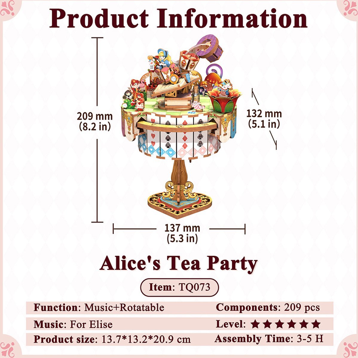 Kit « Book Nook » Alice’s Tea Party boite à musique rotative (209 pièces)