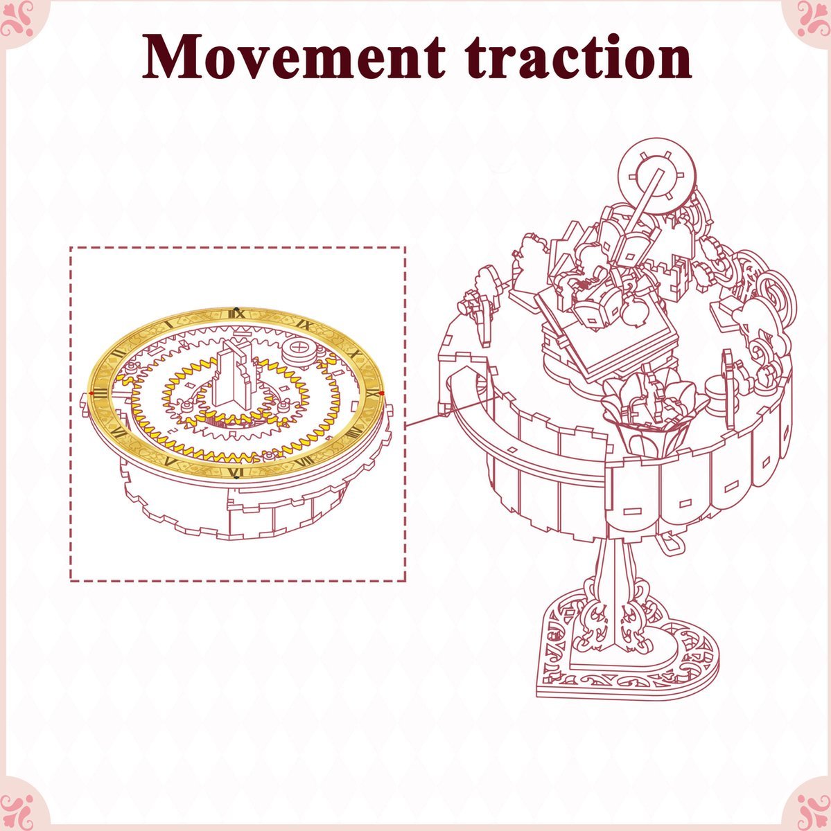 Équipé d’un système d’éclairage LED intégré, ce décor prend vie dès son assemblage. Une plateforme rotative met en mouvement la scène, révélant chaque personnage et détail sous différents angles. Pour compléter l’expérience, un mécanisme musical intégré diffuse une mélodie douce qui accentue encore la magie de ce book nook unique.