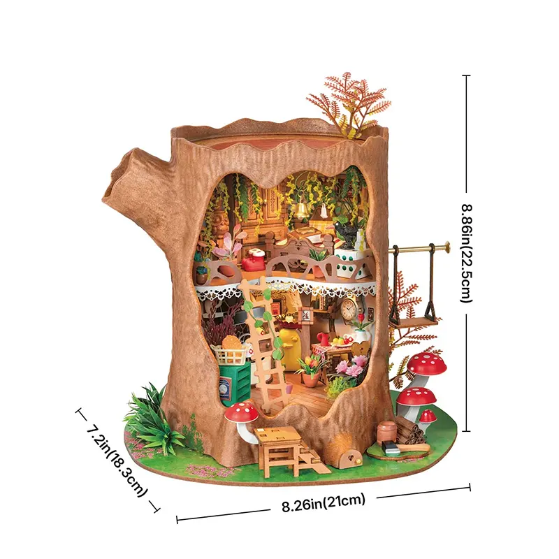 Entrez dans un monde de contes et de magie avec le Kit Book Nook “Fairytale Tree House”, une véritable miniature féerique à construire soi-même. Inspiré des univers fantastiques, ce décor représente une maison enchantée dissimulée dans un arbre majestueux, illuminée par un éclairage LED intégré qui donne vie à chaque détail une fois la nuit tombée.
