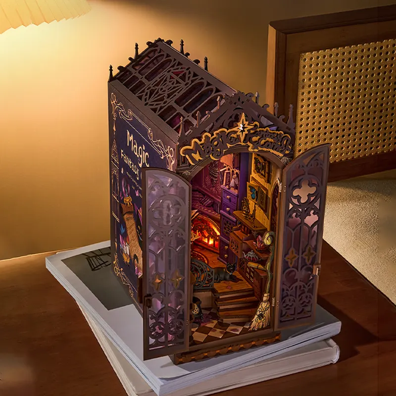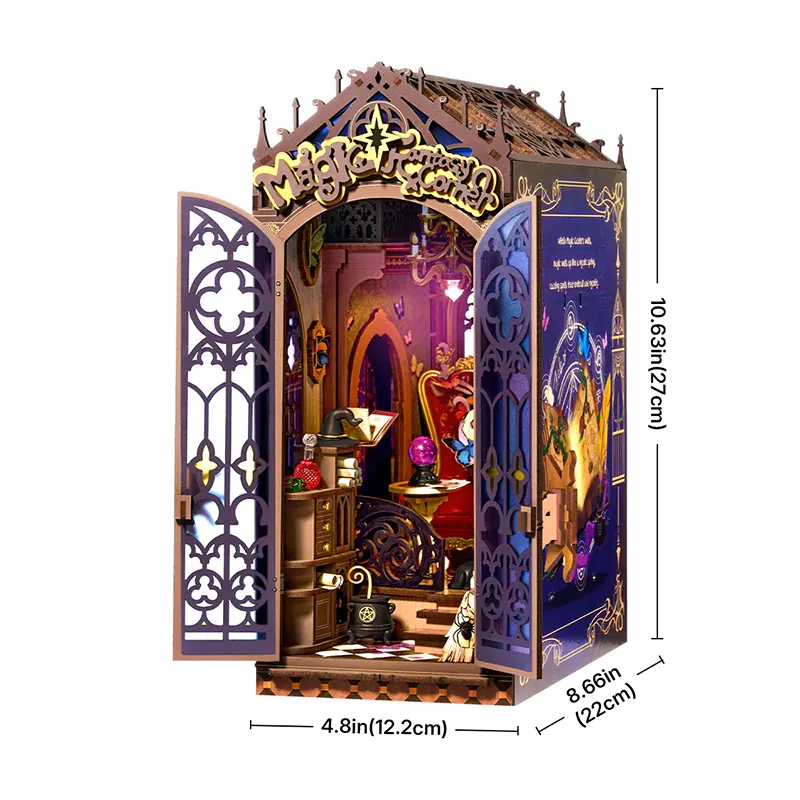 Plongez dans un univers féerique avec le Kit Book Nook “Magic Fantasy Corner”, une miniature DIY à construire qui transforme votre bibliothèque en un véritable monde magique. Ce décor représente un coin enchanté rempli de détails fantastiques, illuminé par un éclairage LED intégré qui fait briller chaque élément.